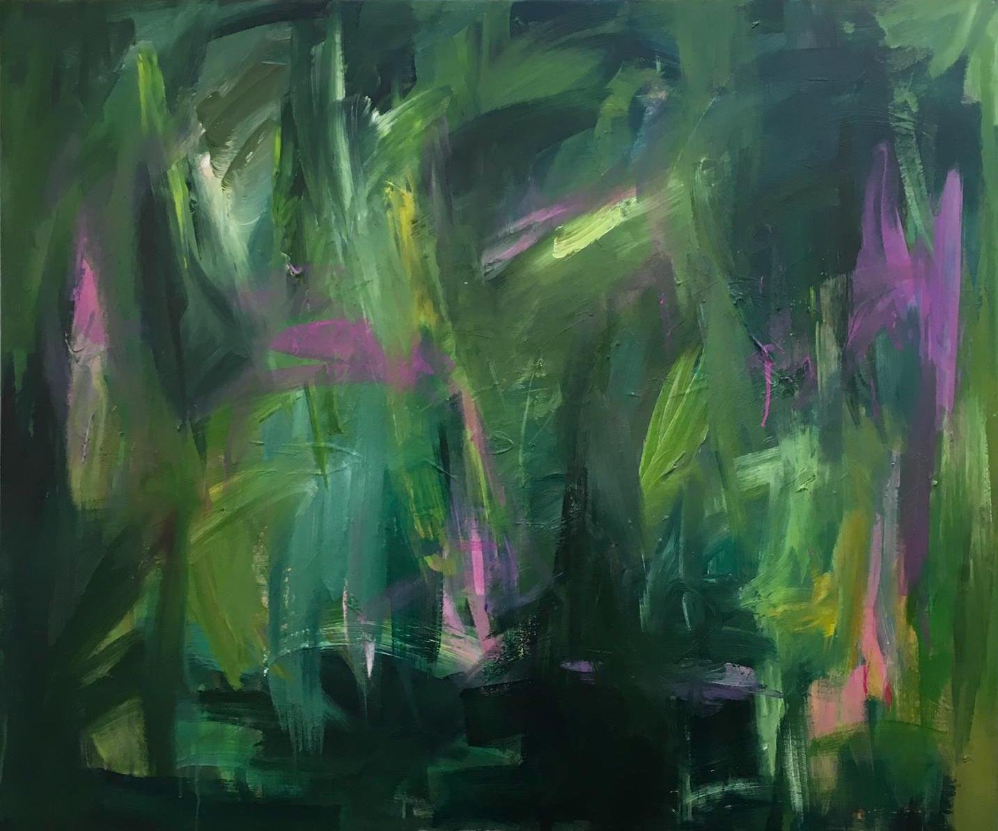 120 x 100 cm, 38mm depth, framed in dark green/black wood